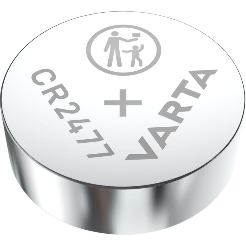 <br />Varta CR 2477. Battery type: Single-use battery, Battery technology: Lithium, Battery voltage: 3 V. Weight: 13 g. Package width: 56 mm, Package depth: 9 mm, Package height: 65 mm. Battery form factor: Button/coin, Shape: Round