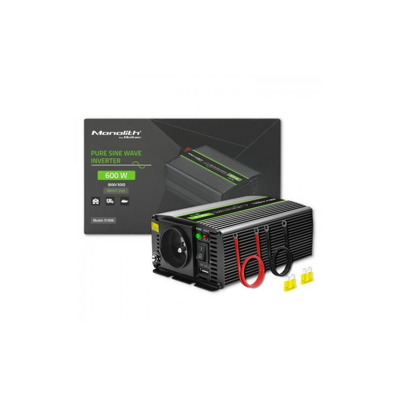<br />Qoltec Monolith. Purpose: Car inverter, Power supply type: Auto, Input voltage: 24 V. Product colour: Black. Quantity per pack: 1 pc(s)