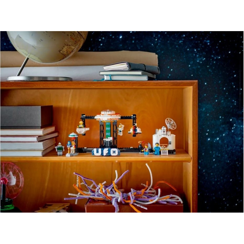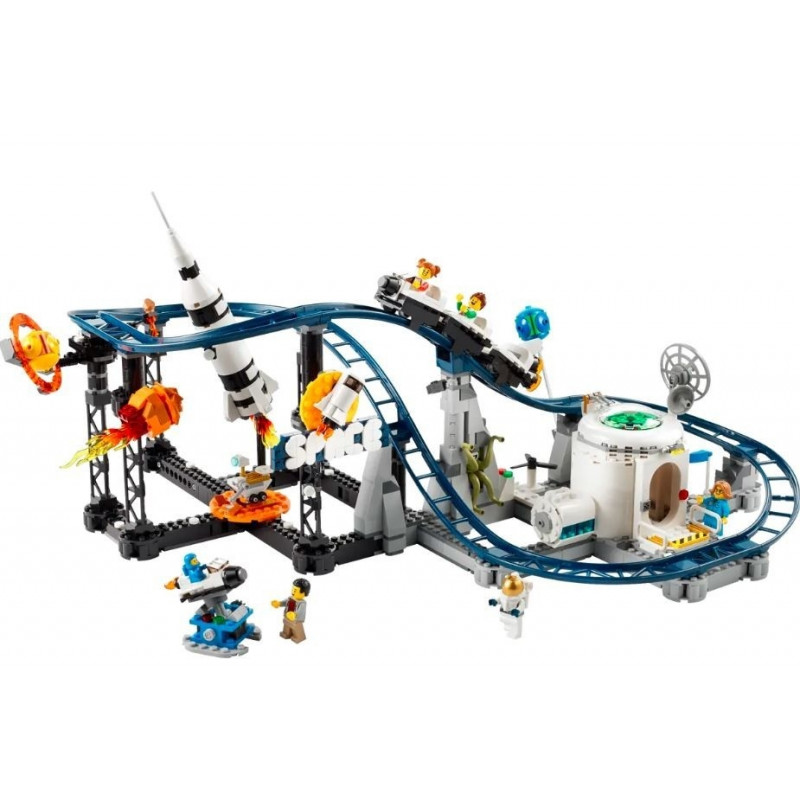 Lastele pakutakse valikut 3 erineva lõbustusparki sõidu ehitamiseks selles unikaalses LEGO Creator 3in1 ehituskomplektis. Nad saavad luua Ruumi Ameerika mäe ja seejärel ehitada selle ümber langeva torni koos liftiga või pöörleva kosmosekarusselliga. Iga komplekt sisaldab valgust tellise funktsiooni, mis süttib aktiveerimisel.