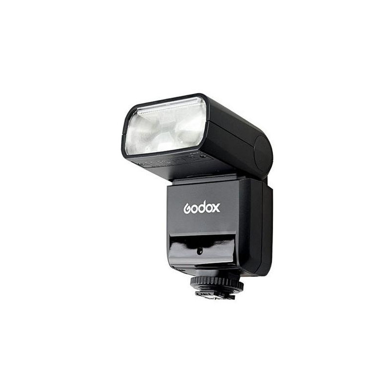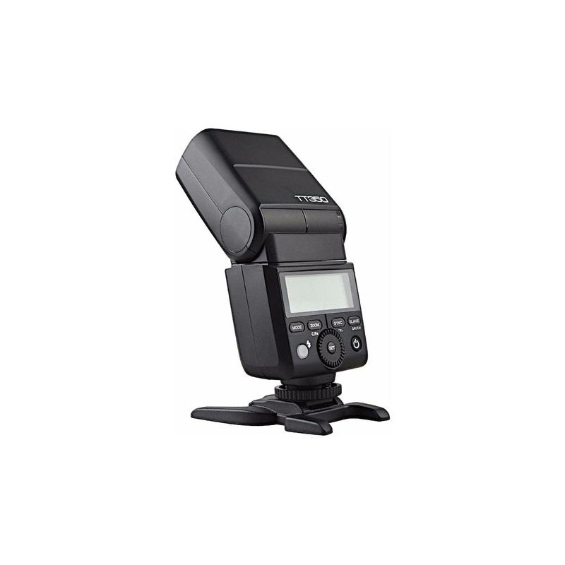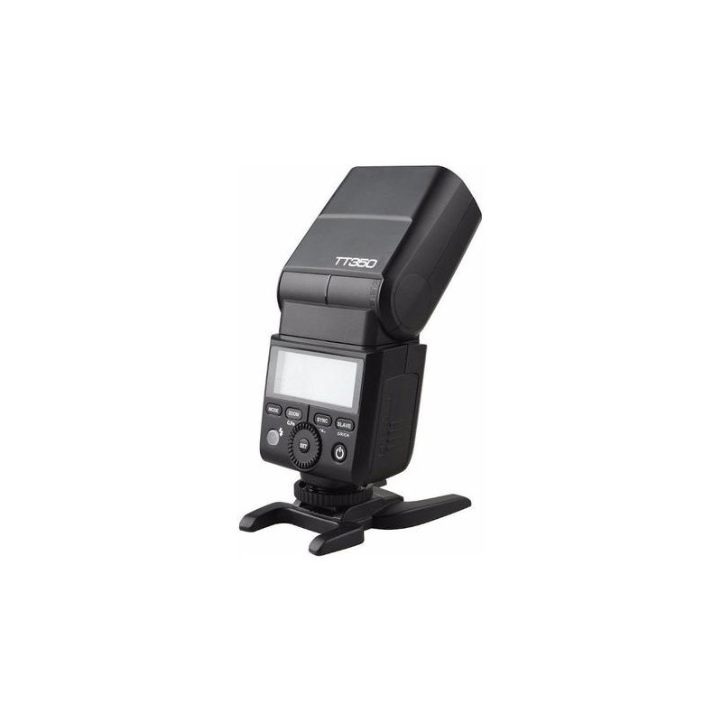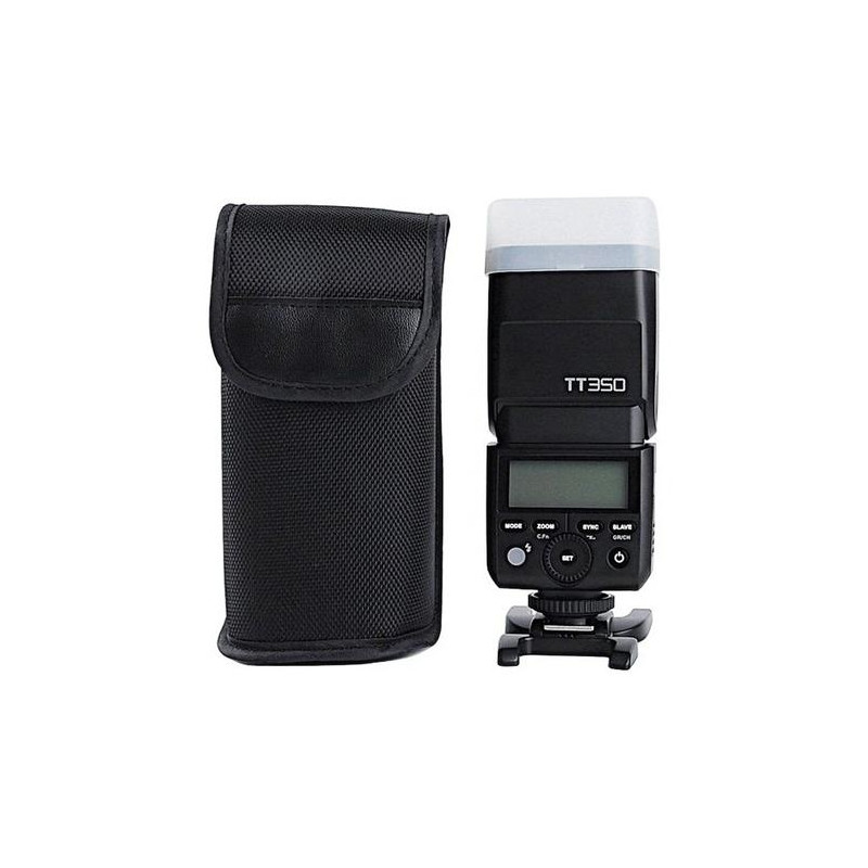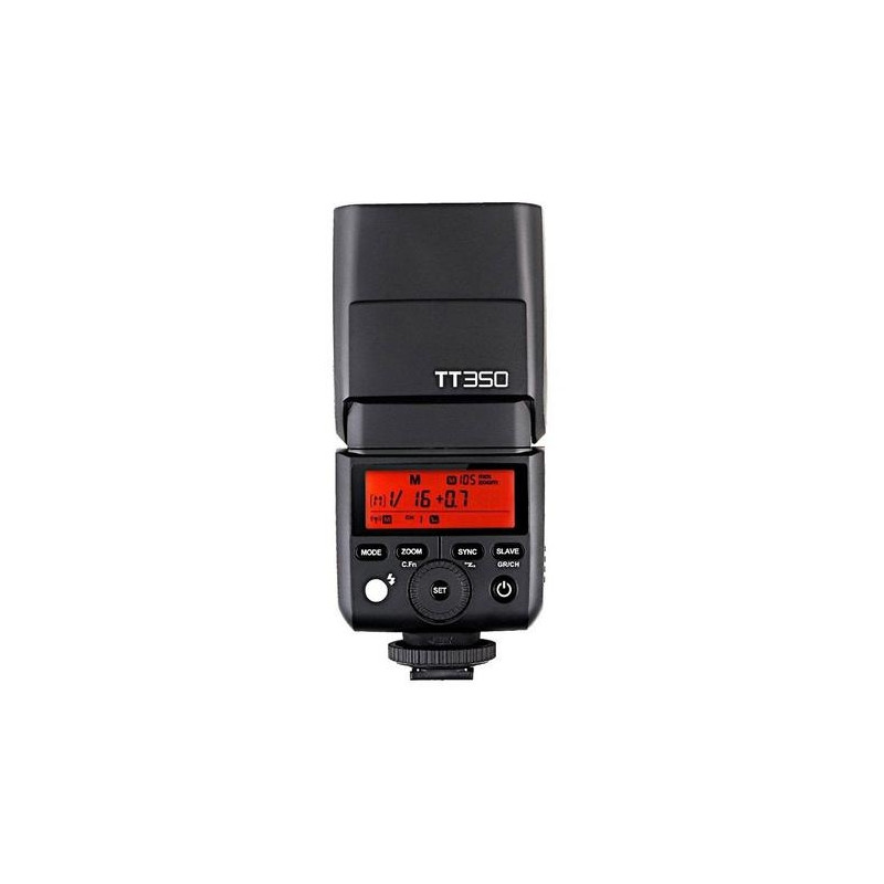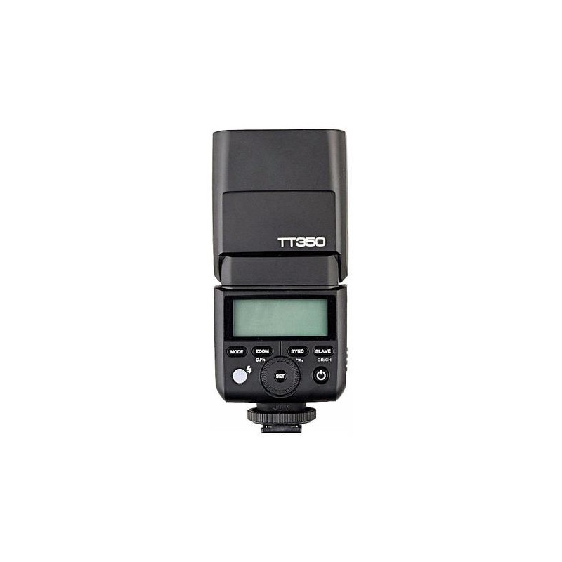 Flash gun Godox TT350 is a small and light flash gun with a guide number of 36 that fits perfectly with mirrorless and compact cameras. It weighs only 200g and when mounted on the camera and pointing the head forward has only 95mm high. Despite its small size, its flash head rotates 270º horizontally and 97º vertically. This allows a lot of freedom in reflecting the flash light from the ceiling and walls regardless of the camera's orientation of pictures in the portrait and horizontal frame.<br><br>The lamp has built-in Godox X system transmitter it can be used as a controller (Master) of other lamps using the Godox X system. It is also possible to switch it to the Slave mode, in which it can be controlled remotely from other Godox X transmitter.<br><br>Flash gun Godox TT350 is equipped with three modes of operation. The first of them (TTL) allows you to shoot with the use of automatic selection of flash light power and work with all the automatic and semi-automatic modes available in cameras. The second option is manual mode with S1 and S2 mode selection. The third mode - strobe (Multi) is great for taking effective photos at longer exposure times.<br><br>Flash gun Godox TT350 offers the ability to sync flash with ultra-fast shutter speeds up to 1 / 8000s ( HSS ). This option is especially appreciated by people who want to use the lamp during outdoor sessions, where very often you have to face intense ambient light.<br><br>Built-in zoom in manual and automatic mode works in the range of 24 - 105mm. If you need to illuminate a wider plan, you can use the wide-angle diffuser built into the head, which corresponds to a focal length of ~ 15mm. In addition, the lamp is equipped with a reflector. In addition, the set comes with an additional light softening cover, which will be useful, e.g. when taking pictures with the torch pointing straight ahead. The factory set is completed with a stand and a handy cover.<br><br>The battery compartment has a micro USB connector, which is used to update the firmware of the lamp.Godox TT350F. Type: Slave flash, Product colour: Black, Approximate recycling time: 2.2 s. Battery type: AA. Weight: 210 g, Width: 60 mm, Depth: 35 mm