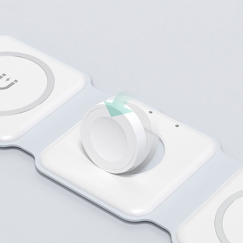 - Toetab kolme seadet korraga: saate laadida telefoni, kõrvaklappe ja kella samal ajal. Ideaalne lahendus mitme seadme kasutajatele.