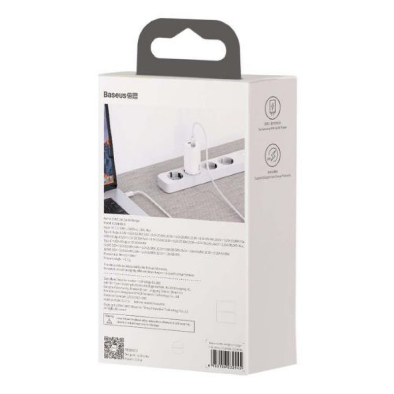 Baseus Travel Charger GaN2 Lite Quick Charger C+U QC 3.0 PD 3.0 65W EU White (CCGAN2L-B02)
