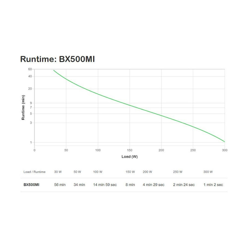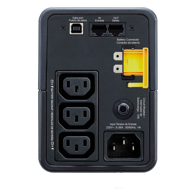 APC Back-UPS 500VA, 230V, AVR, IEC väljundid. UPS-topoloogia: line-interaktiivne, väljundvõimsus: 0,5 kVA, väljundvõimsus: 300 W. Vahelduvvoolu pistikutüübid: C13-pistikupesa, pistik: C14-pistikupesa, vahelduvvoolu väljundite arv: 3 vahelduvvoolu väljundit. Aku-/patareitehnoloogia: suletud pliiaku (VRLA), aku-/patareipinge: 12 V, aku maksimaalne eluiga: 5 aastat. Vormitegur: torn, toote värvus: must, kaabli pikkus: 1,5 m. Vastavussertifikaadid: RoHS, sertifikaadid: CE, EAC, EN/IEC 62040-1