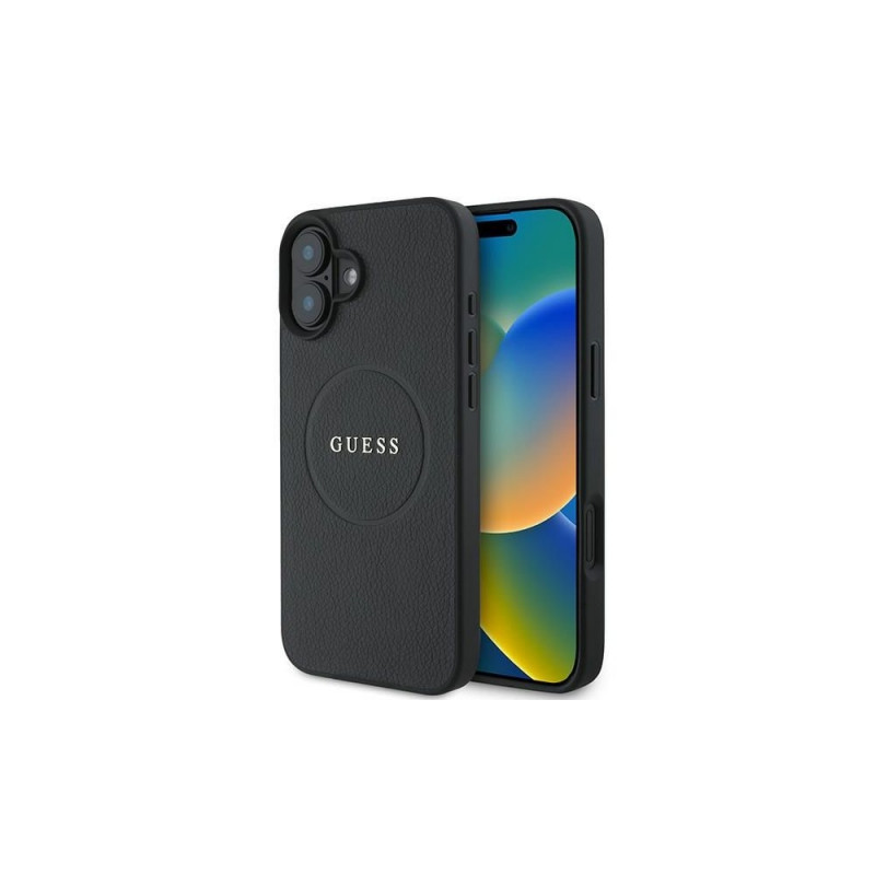 Guess Grained Gold Ring MagSafe case for iPhone 16 Plus - black
