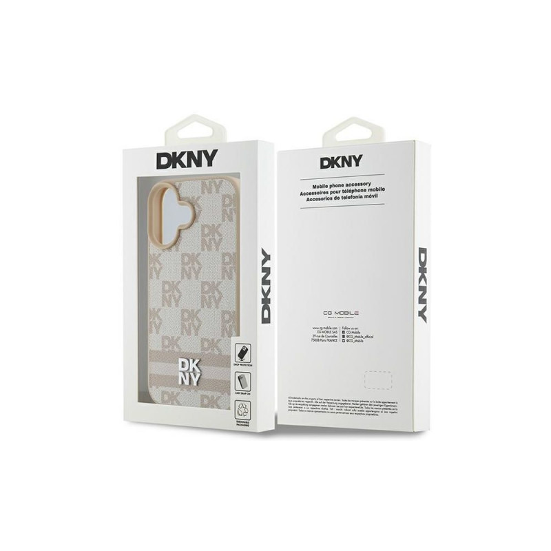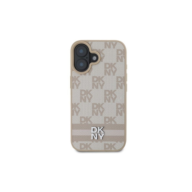 DKNY Checkered Pattern & Printed Stripes iPhone 16 Case - Pink