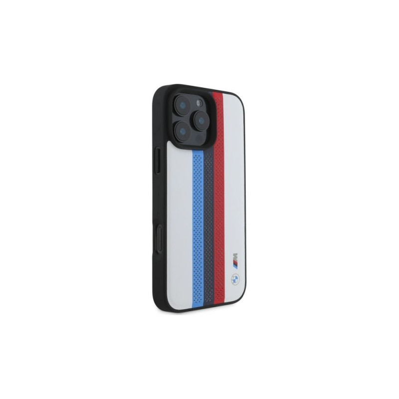 BMW BMHMP16X23PUPTH iPhone 16 Pro Max 6.9" valge kõvakorpus M Perf. tricolor triibudega