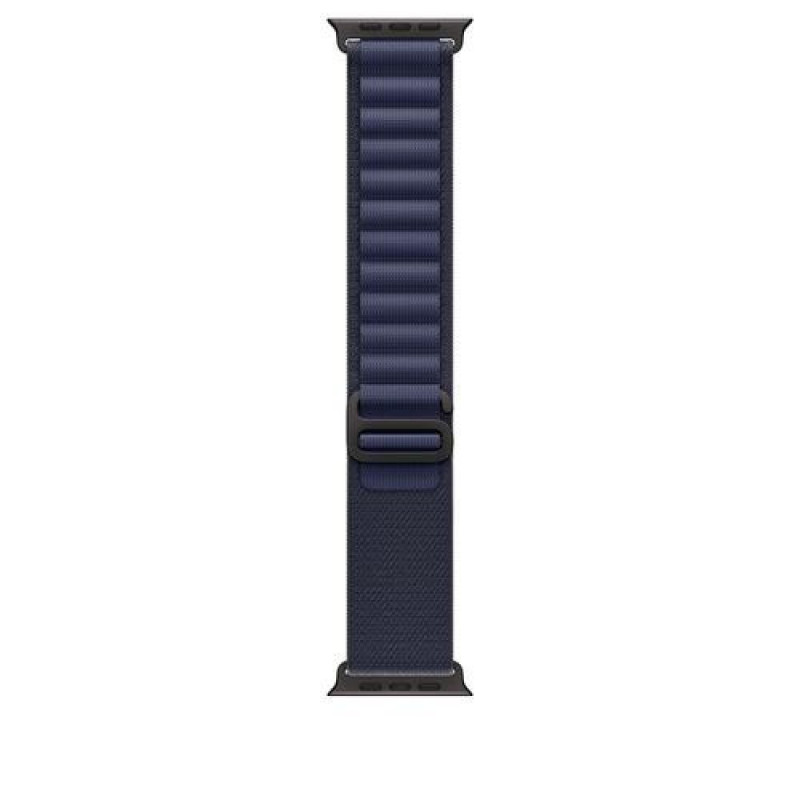 The rugged Alpine Loop is made from two textile layers woven together into one continuous piece without stitching. High-strength yarns reinforce the top loops, and the corrosion-resistant titanium G-hook slides easily into the loops for secure fit.<br><br>This strap is carbon neutral. The Alpine Loop contains 43% recycled content by weight, 100% of manufacturing electricity is covered by clean energy, and 50% or more of all carbon-neutral Apple Watch products are shipped without aeroplanes.ºApple 49mm Navy Alpine Loop - Medium - Black Titanium Finish. Product type: Band, Compatible device type: Smartwatch, Product colour: Navy. Wrist size range: 145 - 190 mm. Quantity per pack: 1 pc(s)