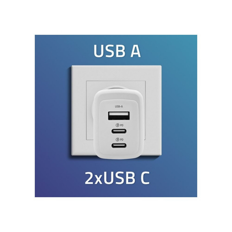 Qoltec 65W GaN seinalaadija valge