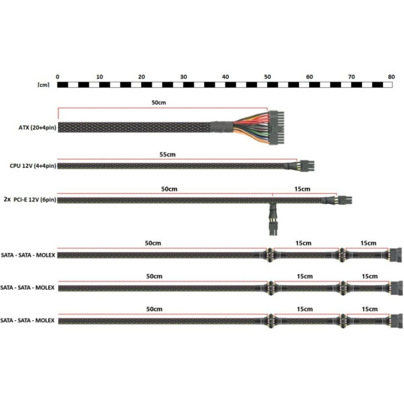 - 3x Molex pistikut (3-l 80cm pikkusel kaablil, lamedad mustad, jagatud SATA-ga)