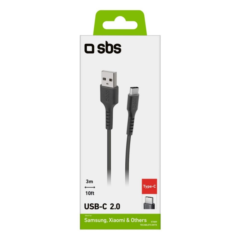 SBS TECABLETC3MTK USB-A - USB-C Cable 3m - Black