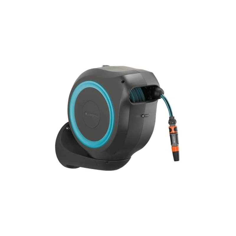 Seinale kinnitatav voolikukast GARDENA RollUp M, 20 meetrit (hall/türkiis)