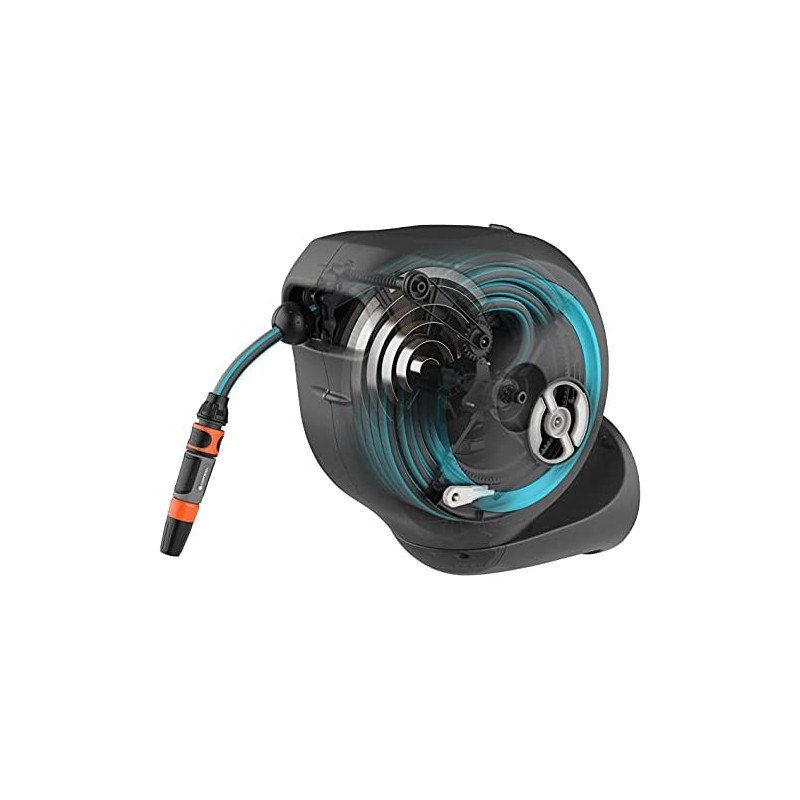 GARDENA Wall-Mounted Hose Box RollUp M, 20 meters, hose reel (grey/turquoise)