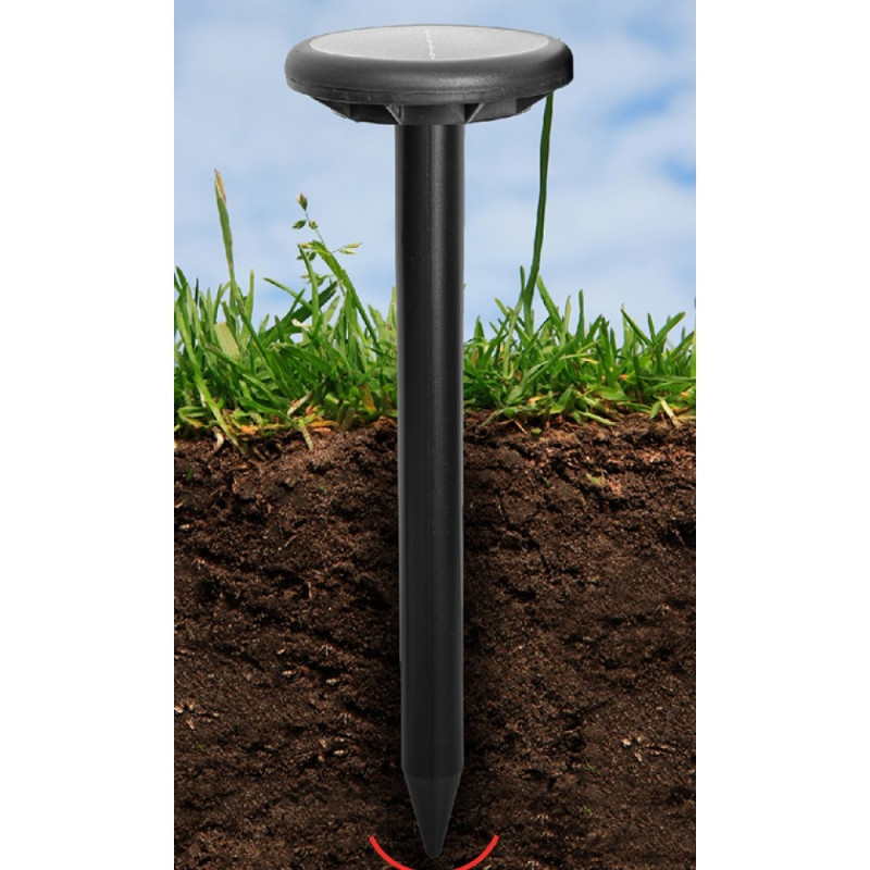 Seadme töö ulatus sõltub pinnase tüübist. Kuiv liivane alus summutab helilaineid ja võib puhvertsooni vähendada poole võrra (sel juhul kaaluge kahe toote kasutamist). Parim efekt saavutatakse niiskes või savises mullas. Mõju on nähtav umbes 5 päeva pärast toote paigaldamist. MÄRKUS. Kui näete endiselt, et närilised või mutid pole kadunud, kaaluge täiendavate meetmete kasutamist.