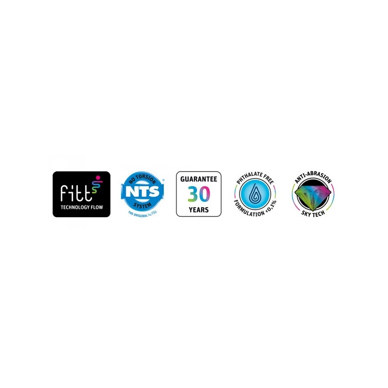Kollane sisemine kiht, vetikavastane must kiht, kollane vahekiht, NTS tugevdatud kiht ja läbipaistev väliskate, "Sky Tech" kile, millel on spetsiaalne UV-kiirguse vastane koostis, mis ennetab vooliku vananemist ja annab sellele spetsiaalse satiinviimistluse.
