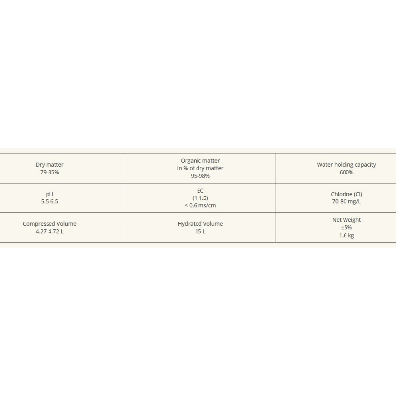 6,5 liitri puhta veega annab kuni 15 L kookosturvast.