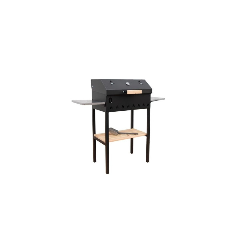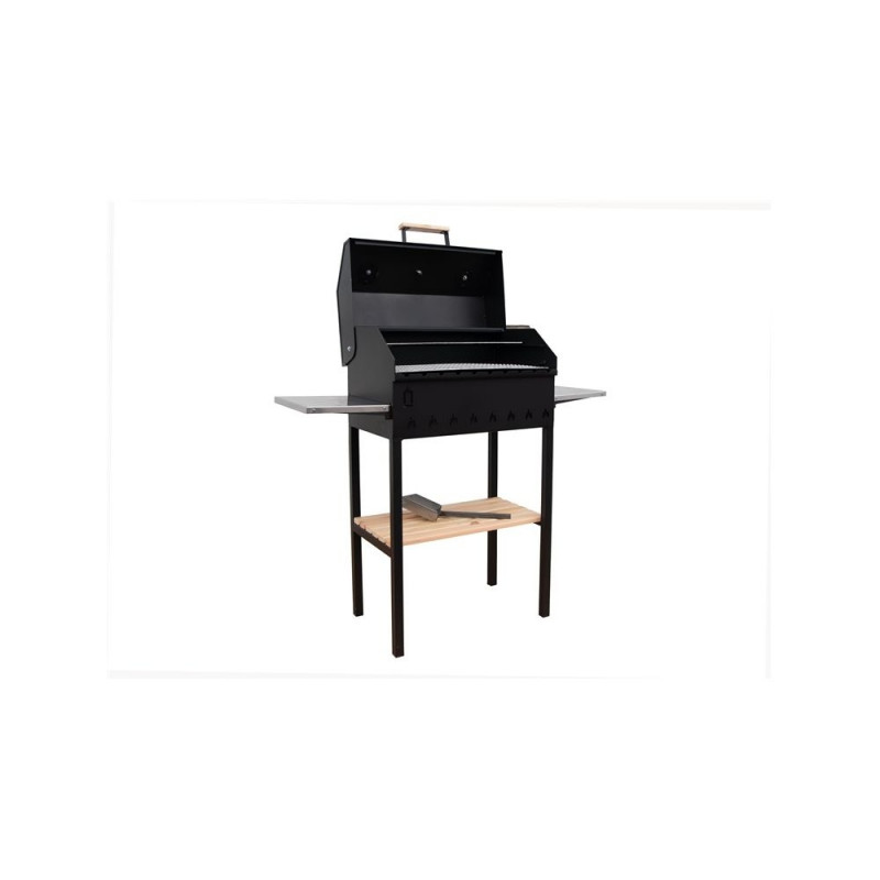 Grilli tugev metallkorpus tagab pika kasutusea ja vastupidavuse erinevates ilmastikutingimustes. Kaas võimaldab hoida soojust ning valmistada toitu ühtlasemalt, aidates säilitada liha mahlakust ja maitset. Kaane olemasolu muudab grilli eriti mitmekülgseks, võimaldades suitsutada, küpsetada ja grillida erinevaid toite. Riiulid grilli külgedel pakuvad mugavat lisaruumi tarvikute, maitseainete või toidu hoidmiseks, muutes kogu grillimisprotsessi sujuvamaks ja organiseeritumaks.