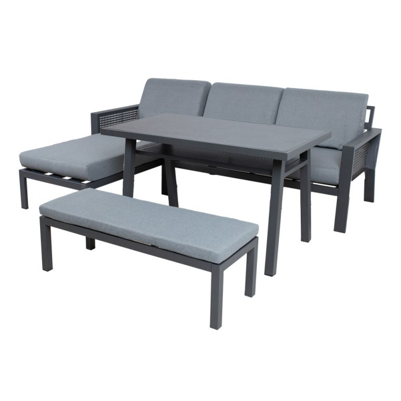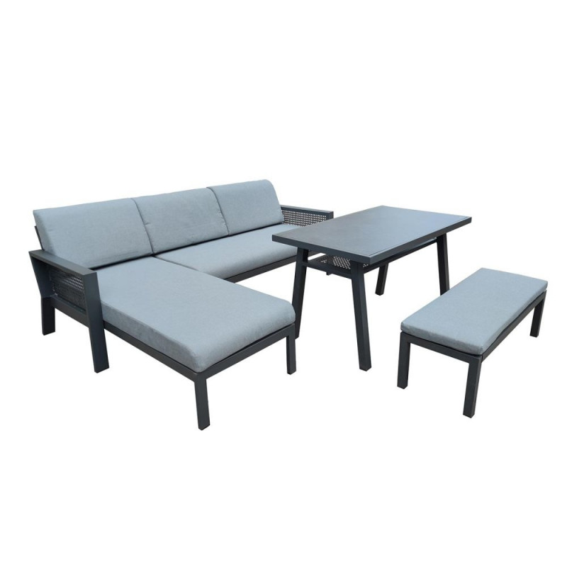 Aiamööblikomplekt DELGADO nurgadiivan, laud ja pink