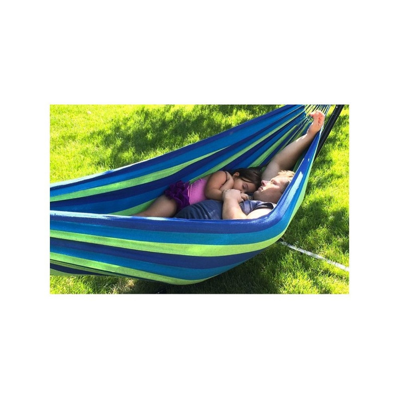 Vastupidav rippuv hammok aeda. Hammok on valmistatud paksust materjalist. Hammok on vastupidav, kuid samas õhku läbilaskev, mis teeb puhkuse sellel eriti meeldivaks. Hammok võtab vähe ruumi ja seda saab kõikjale kaasa võtta, näiteks matkale, randa jne. See on lihtne hoiustada. Eriti mugav ja stabiilne. Hammokit saab riputada peaaegu kõikjale. Piisab, kui kinnitada mõlemad otsad stabiilsele pinnale - näiteks postidele, konksudele või puudele.