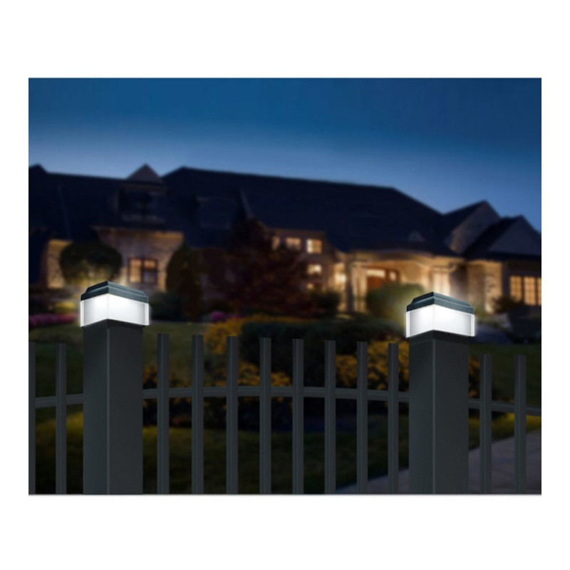 100x100 mm mõõtmetega LED-päikesekate postile paistab silma elegantse, ruudukujulise vormiga, mis sobitub suurepäraselt nii klassikalisse kui ka modernsesse keskkonda. Integreeritud 8 kvaliteetset LED-dioodi kiirgavad meeldivat, neutraalset valgust valgusvooga 8 luumenit, pakkudes õrna, kuid piisavalt tugevat ümbruse valgustust. Tänu neutraalsele valgusvärvile sobib see ideaalselt valgusaktsendiks ilma pimestava efektita – luues kinnistule hubase atmosfääri.