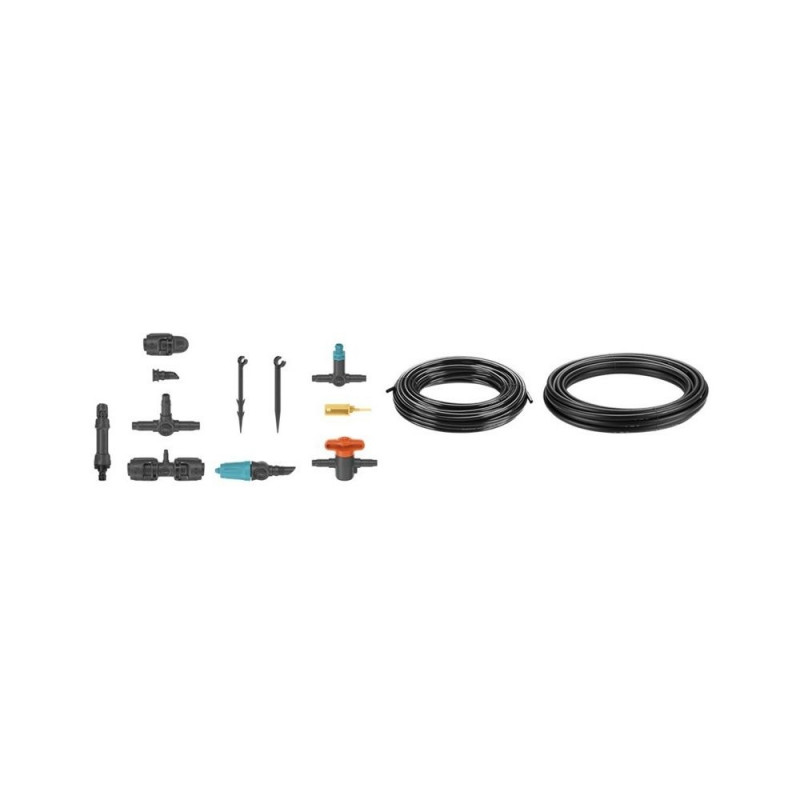 - Komplekti sisu: voolikud, tilgutid, ühendusdetailid, vajadusel rõhuregulaator