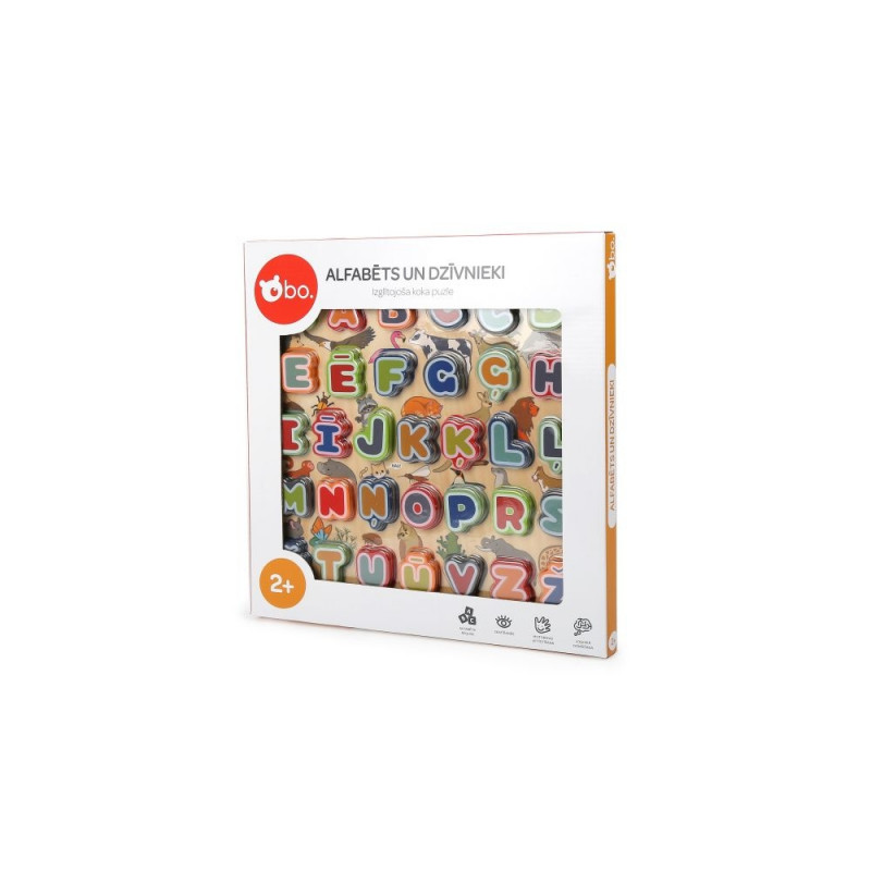 bo. Educational wooden puzzle "Alphabet and animals" (In Latvian lang.)