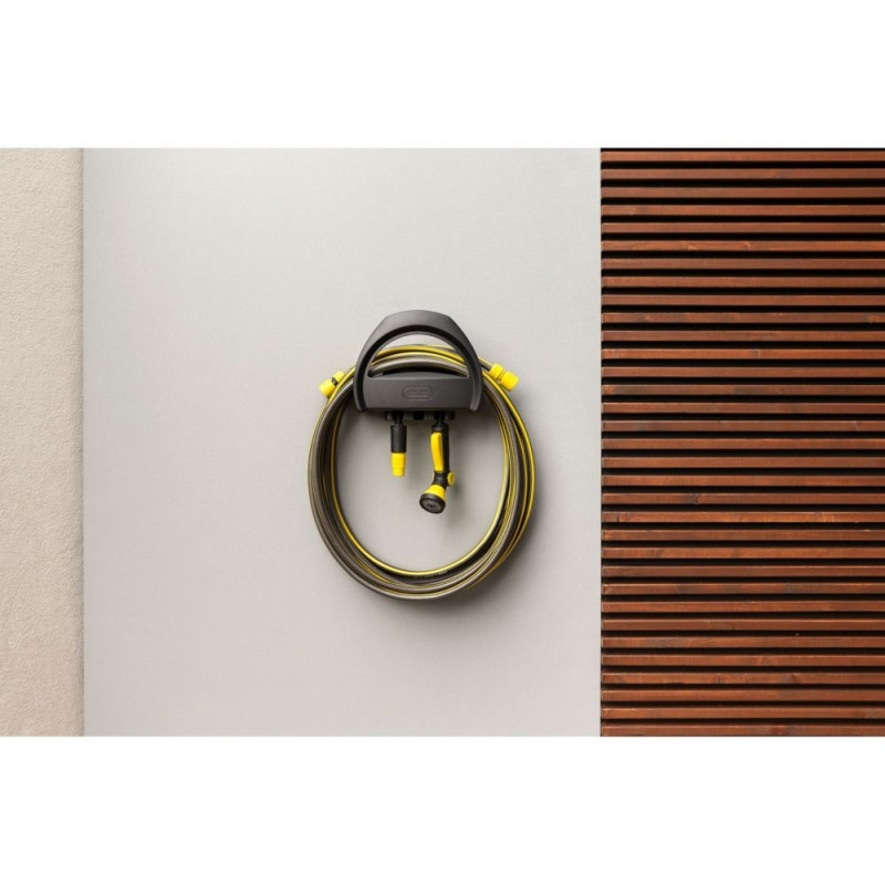 Lihtne ja kompaktne kasutada ning tagasihoidliku disainiga: seinapealse voolikuhoidikuga saab aiavooliku ruumisäästlikult seinale paigutada. Lisaks on hoidikul pesad pihustite ja kastmisvarraste jaoks. Pärast kasutamist saab aiavooliku hõlpsasti voolikuhoidikule asetada. Tänu kvaliteetsetele materjalidele on seinapealne voolikuhoidik eriti vastupidav ja kauakestev ning UV- ja külmakindel.