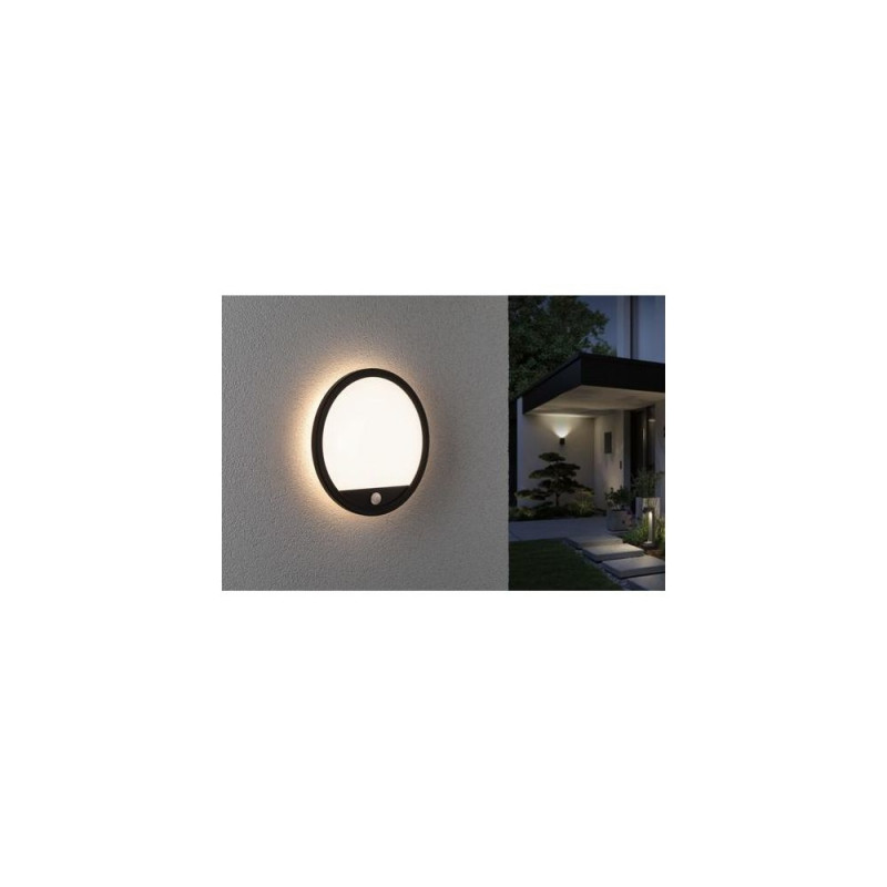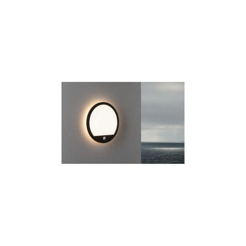Outdoor luminaires by the coast are subject to harsher environmental influences than outdoor luminaires inland. The salt in the air corrodes metals and plastics more aggressively. Made of high-quality plastic, the Lamina outdoor panel with dimensions of 280mm does not corrode by the sea. Whether installed on the wall or on the ceiling, the rounde panel with black frame and white inner surface emits extensive warm white light. The additional backlight creates a pleasant atmosphere and places even more emphasis on the ceiling/wall. The motion sensor ensures that the light switches on automatically in darkness when someone approaches. The various functions of the motion sensor can be set via a switch on the luminaire.Paulmann 94664. Type: Outdoor wall lighting, Product colour: Black, Housing material: Plastic. Number of bulbs: 1 bulb(s), Bulb type: LED, Total power: 14.5 W. Power source type: AC, Energy efficiency class: E. Width: 280 mm, Depth: 280 mm, Height: 47 mm. Quantity per pack: 1 pc(s)