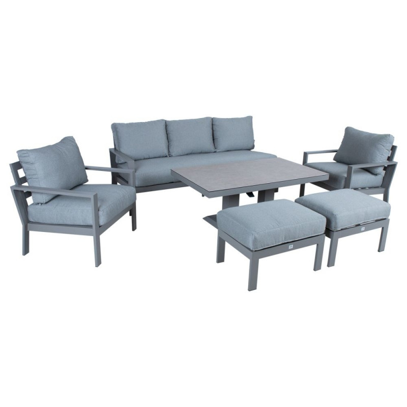 Aiamööblikomplekt RIO laud, diivan, 2 tugitooli ja 2 tumbat, hallikasbeež