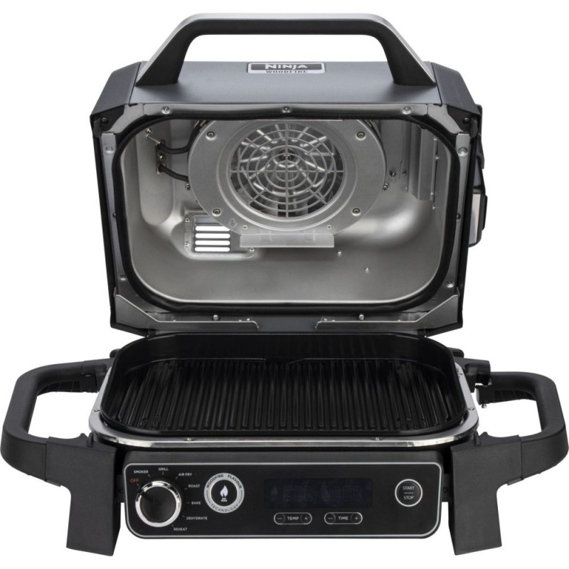 Nautige õues kokkamist aastaringselt Ninja Woodfire elektrilise väligrilli ja suitsuahjuga. See mitmekülgne grill võimaldab teil grillida ja suitsutada, õhufritüürida, röstida, küpsetada ning isegi kuivatada – kõik loomuliku puidumaitsega.