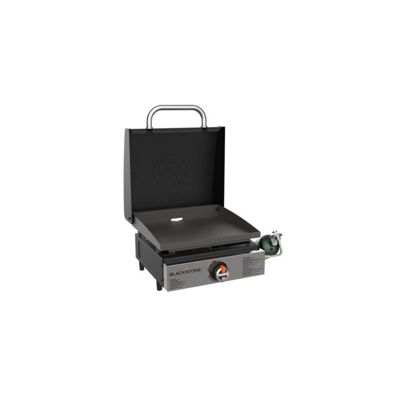 Wherever you go, take your Original 17” Tabletop Griddle with you. Whether you're off tailgating, camping, fishing, or having a picnic in the park, the portable design of this flat top grill lets you take restaurant quality food with you. It quickly heats up with 12,500 BTUs through an “H” style burner to provide even heat distribution. Featuring our rear grease management system for easy clean up, wherever you are. Cook outdoors without compromising with this small, but mighty Blackstone.<br><br>Blackstone 2143EU. Number of cooking zones: 1 zone(s), Placement supported: Outdoor, Gas type: Butane/Propane. Appliance placement: Freestanding, Product colour: Black, Grey, Control type: Rotary. Width: 467 mm, Depth: 566 mm, Height: 312 mm