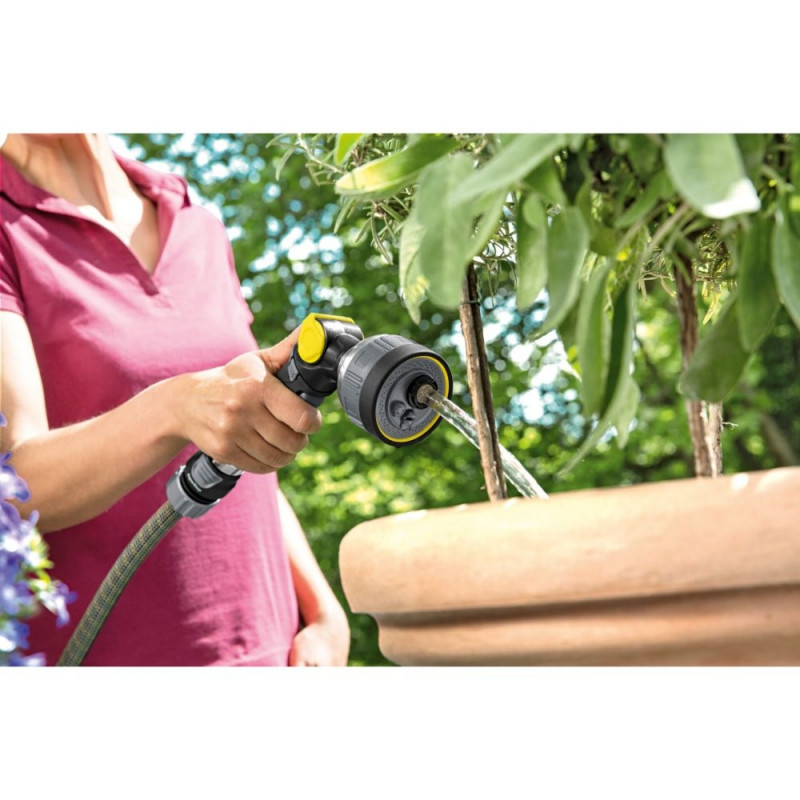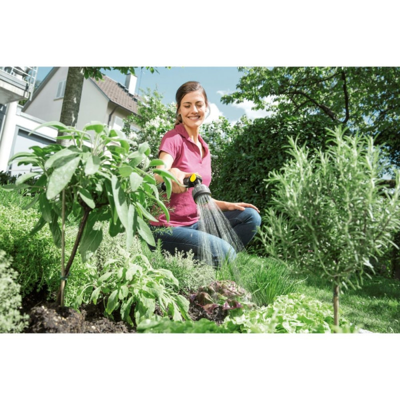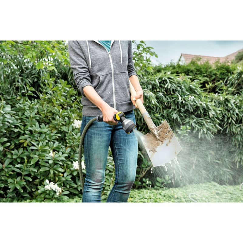 Vastupidav pihustuspüstol kvaliteetsete metallist detailidega ja nelja pihustusrežiimiga: dušš, lamejoa, pärlijuga, udustus. Ideaalne taimede kastmiseks, pindade puhastamiseks ja anumate täitmiseks. Ergonomiline, külmakindel, ühilduv kõigi levinud kiirkinnitussüsteemidega.