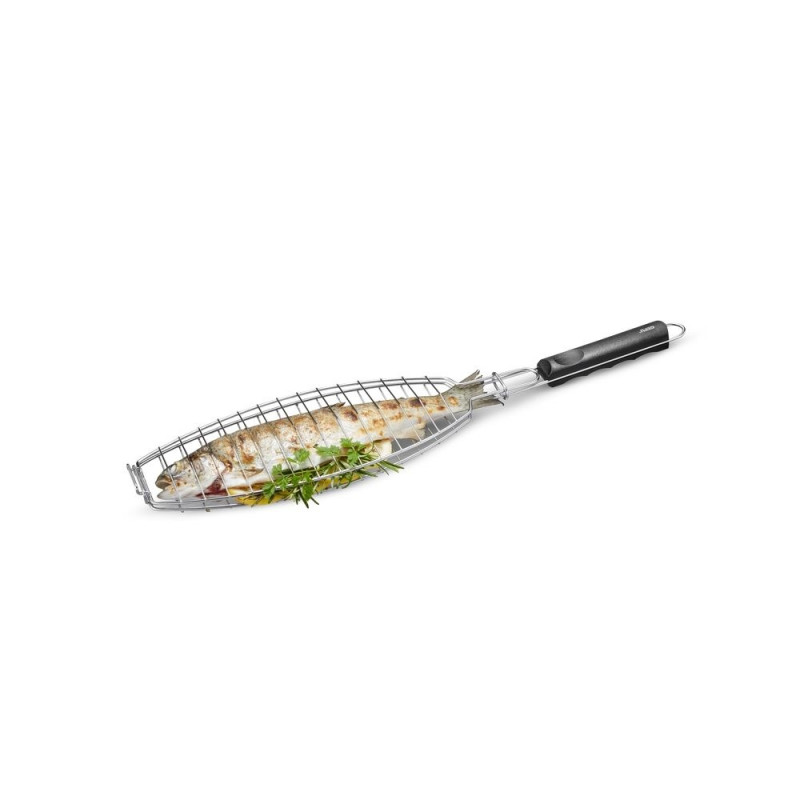 ZB 8189 kalarest teeb kala grillimise eriti lihtsaks. Kalarestiga saab hõlpsalt grillida terveid kalu, mille maksimaalne suurus on (pikkus) 26,5 cm x (laius) 10,5 cm. Turvaline sulgur tagab lihtsa täitmise ja eemaldamise. Kalarest sobib igale lahtisele grillile. Tuleb märkida, et käepidet ei tohi otsese kuumuse kätte panna.Tehnilised andmed Värv: must, hõbedane Mõõtmed (K x L x S) (cm): 3,5 x 50 x 12 Kaal (g): 191