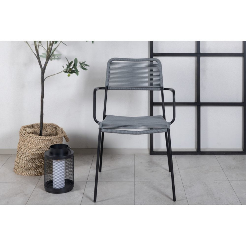 Täiendage oma terrassi modernse halli tooniga, kasutades elegantne aiatool Lindos seeriast. Tooli käetugedel on must alumiiniumkonstruktsioon ning hallist punutud köis iste. Lindos on tõeline disainiikoon, mis sobib nii klassikaliste kui kaasaegsete sisekujundustega. Tool on virnatatav ja pakub mugavat istumist. Istme kõrgus on 45 cm, laius 44,4 cm ja sügavus 40 cm. NB! Toodet müüakse ainult 2-pakendis, hind on näidatud tüki kohta.