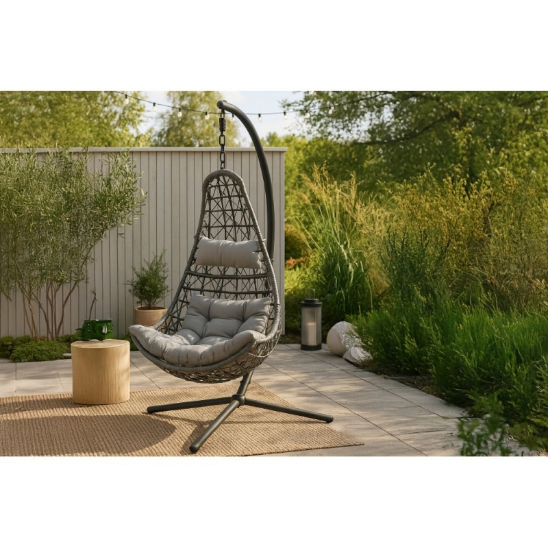 Tõeline trendilooja rõdul või aias või miks mitte basseini ääres? Ripptool Edinburgh on ideaalne suve laisaks päevadeks. Sünteetilisest rotangist iste ja mustast terasest raam. Komplektis on pehmed hallid padjad vetthülgavast polüestrist ning mugav padi. Istme laius: 132 cm, istme sügavus: 70 cm.