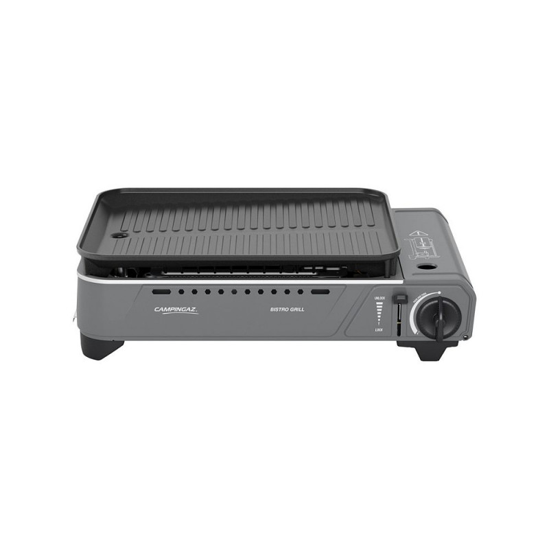 Campingaz Bistro. Koguvõimsus: 2000 W, Tüüp: Grill, Soojusallikas: Gaas. Vormifaktor: Keedujaam, Pinna tüüp: Rest, Toote värvus: Roostevaba teras. Laius: 430 mm, Sügavus: 280 mm, Kõrgus: 110 mm