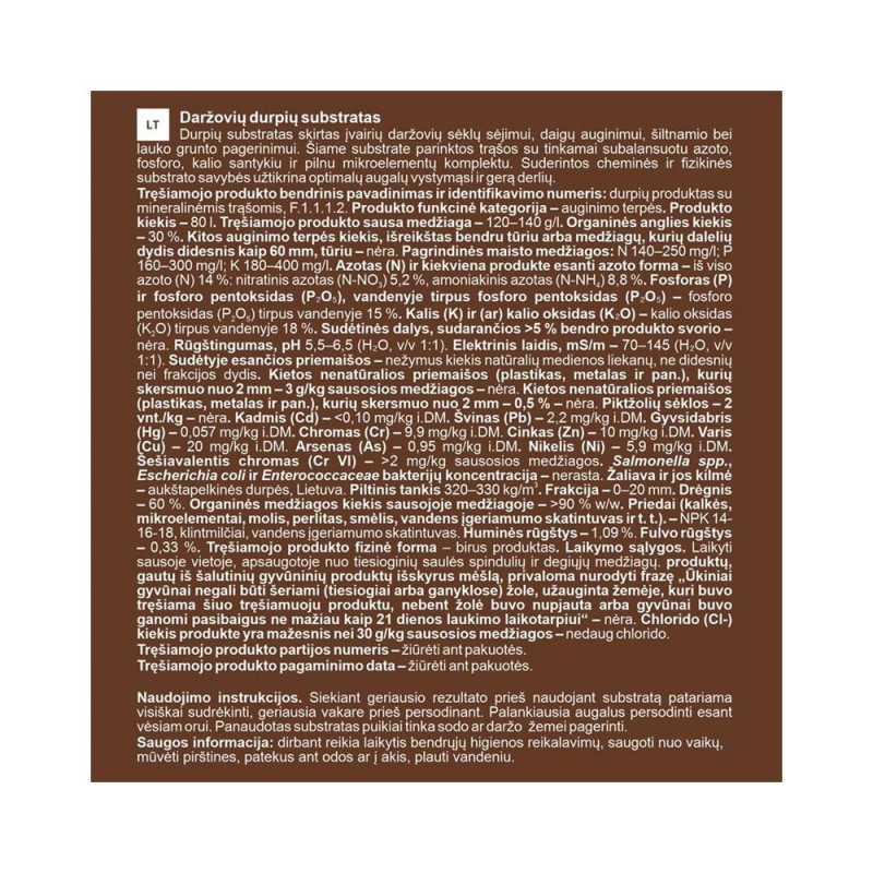 Tehnilised andmed:- Tootenimi: Köögiviljade Substraat 80L GARDEN CENT