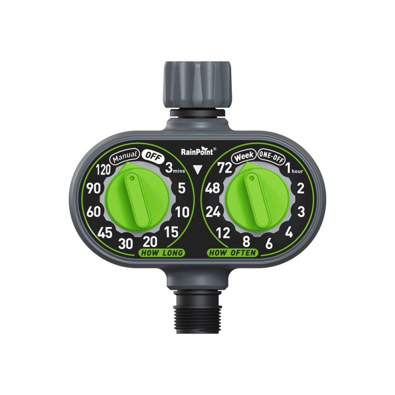 Automatiseeri oma aia kastmine RainPoint ITV121 kontrolleriga, mis võimaldab sul täpselt seadistada tööaja 3 kuni 120 minutini ja kastmissageduse 1 tunnist kuni 7 päevani. Seadmel on 11 eelseadistust ja mugav juhtimine kahe 360° pööratava nupu abil, mis võimaldab sul kiiresti kohandada graafikut vastavalt oma taimede vajadustele. OFF, Manual, Week ja One-Off režiimid pakuvad paindlikkust – saad kasutada nii automaatseid tsükleid kui ka alustada kastmist käsitsi igal ajal.
