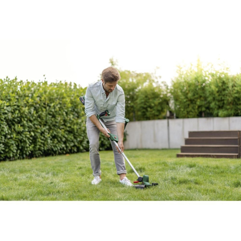 Bosch UniversalGrassCut akuga murutrimmer on suurepärane abiline igale koduaednikule, kes hindab mugavust, tõhusust ja töökindlust. See trimmer on loodud spetsiaalselt selleks, et muuta muruservade ja raskesti ligipääsetavate kohtade hooldus võimalikult lihtsaks ja kiireks. Tänu ergonoomilisele disainile ja kergele kaalule sobib see tööriist kasutamiseks nii algajatele kui ka kogenud aednikele. Bosch UniversalGrassCut pakub vabadust töötada ilma juhtmeteta, võimaldades liikuda vabalt kogu aias.