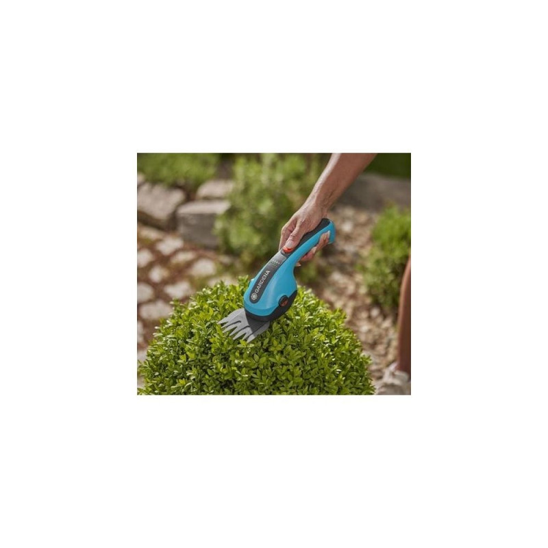 The Battery Grass Shears ClassicCut Li from GARDENA help you cut lawn edges in the garden. The blade is precision-ground and non-stick coated for long-lasting sharpness. This ensures a precise and clean cut. Therefore, the ClassicCut Li is equally suitable for shape trimming of small shrubs such as a boxwood. The quality blade is made in Germany. The grass shears are characterised by their slim design. Thanks to the ergonomic handle, it fits comfortably in your hand and is easy to handle. The low weight of 550 grams enables fatigue-free cutting. The battery lasts around 50 minutes when fully charged. An LED display shows the charging status of the battery so that you can keep an eye on it at all times. You can charge the Battery Grass Shears ClassicCut Li with the help of the included USB-C cable. Changing or replacing the blade of the grass shears is simple, just press a button. With the separately available shrub blade (Art. No. 9863-20), you can convert the ClassicCut Li into shrub shears. For cutting without bending, you can combine the Battery Grass Shears ClassicCut Li with the telescopic handle with wheels (Art. No. 9859-20), available separately. Passion powered by GARDENA. Battery garden equipment that gives you the freedom to create.<br><br><b>Precise cutting thanks to quality blade</b><br>The durable quality blade is precision-ground for long-lasting sharpness and is optimally pre-tensioned. In combination with the non-stick coating, a precise and clean cut is possible for lawn edges or the shaping of boxwood.<br><br><b>Comfortable handling</b><br>The grass shears are characterised by a slim design. Thanks to the ergonomic handle, it lies comfortably in the hand and is easy to guide. The ClassicCut Li weighs only 550 grams. This allows fatigue-free cutting.<br><br><b>Quality blade made in Germany</b><br>The 8 cm wide grass blade ensures an optimal cut as well as high safety. It is made in Germany.<br><br><b>Quick blade change at the touch of a button</b><br>Loosen and change the blades by simply pressing a button, without any tools at all.<br><br><b>Powerful battery technology and charging via USB-C</b><br>The built-in lithium-ion battery powers the grass shears, is easy to maintain and rechargeable. The charging status is indicated by an LED display. The running time is around 50 minutes with a fully charged pair of shears. The battery is charged with the included USB-C cable.<br><br><b>Convenient accessories available separately</b><br>The Battery Grass Shears ClassicCut Li can be converted into shrub shears with the shrub blade (art. no. 9863-20). The telescopic handle with wheels (Art. No. 9859-20) allows you to cut lawn edges without bending down. Both are available separately as accessories.Gardena 9884-20. Blade width: 8 cm, Product colour: Black, Green. Battery technology: Lithium-Ion (Li-Ion), Battery voltage: 3.6 V, Battery capacity: 2.5 Ah. Weight: 550 g. Country of origin: Germany