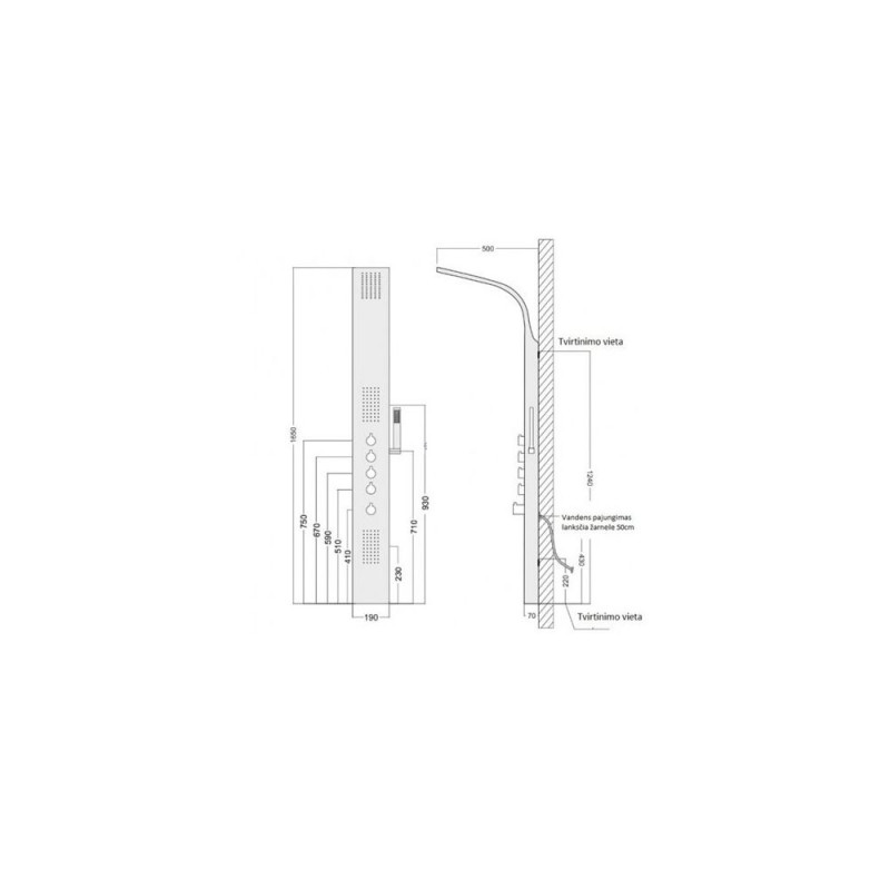 Dušipaneel standardsegistiga Corsan Samsara inox, S003M inox