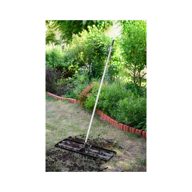 - Sobib ideaalselt muru tasandamiseks, seemnete külvamiseks ja väetise laotamiseks