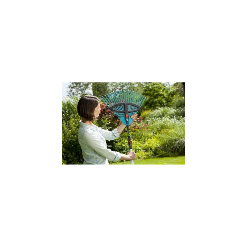<b>For raking leaves and grass clippings</b><br>With the GARDENA combisystem Plastic Adjustable Rake, you can easily rake leaves, grass clippings, aerated material or other garden debris. The GARDENA combisystem allows for flexible use, thanks to the exchangeable attachments. The adjustable rake is compatible with all handles of the GARDENA combisystem and can be mounted and secured with the handle. GARDENA recommends a handle with a length of 130 cm, the selection of the handle depends on the working conditions and your body height. The secure connection between rake and handle ensures that you can always work comfortably. The rake is made from high-quality, durable plastic. You can adjust the width between the flexible plastic tines, to select a working width between 35 and 52 cm for fine or coarse raking. Gardena Combisystem Plastic Adjustable Rake. Product type: Hand rake, Product colour: Black, Green, Maximum working width: 52 cm