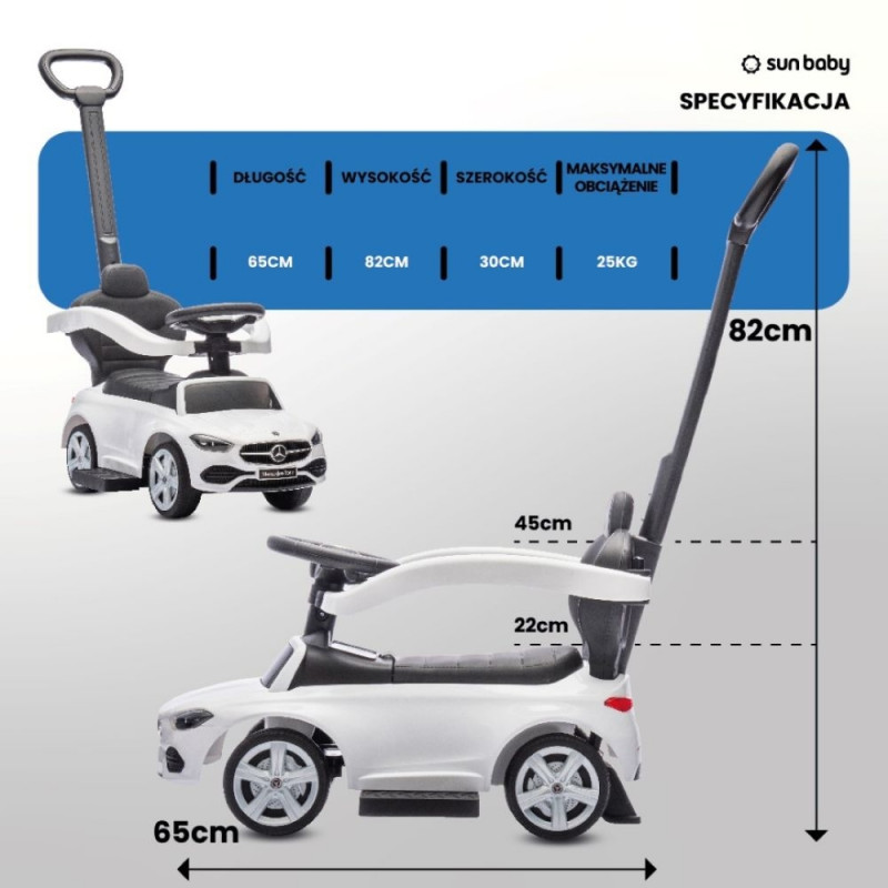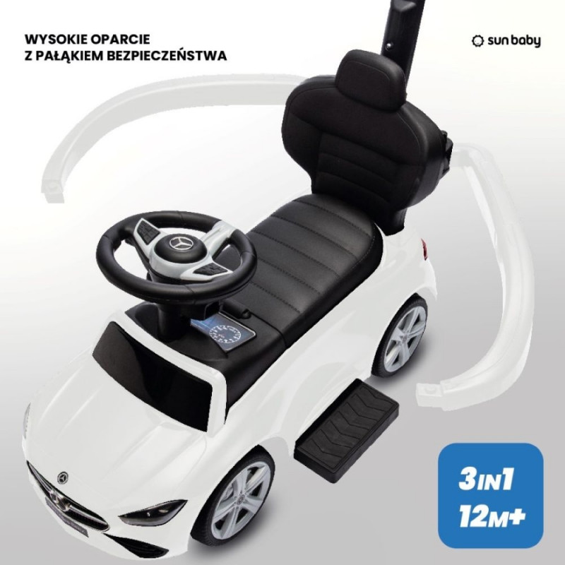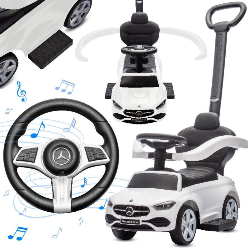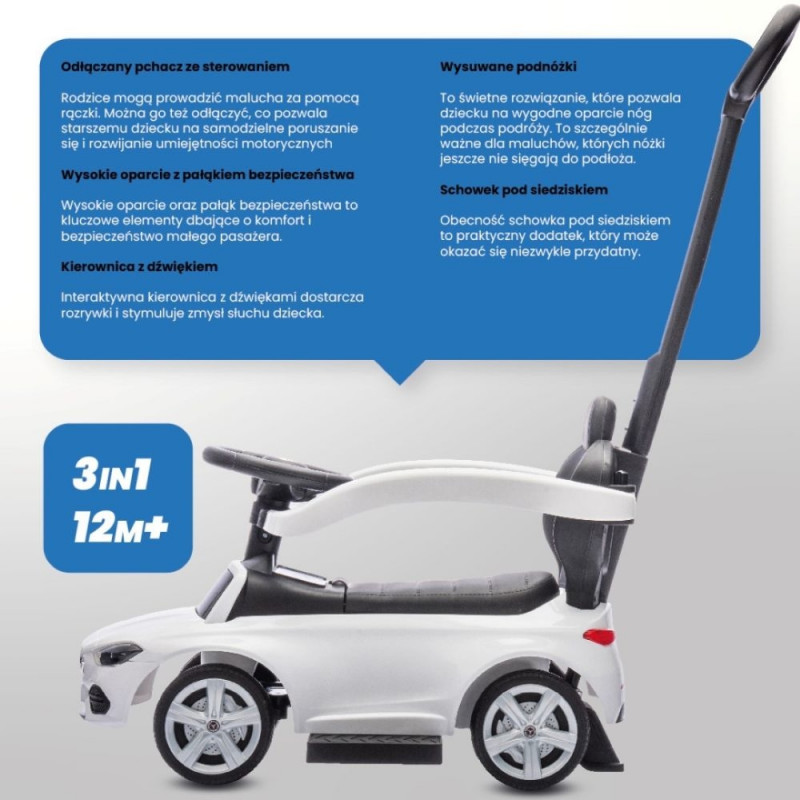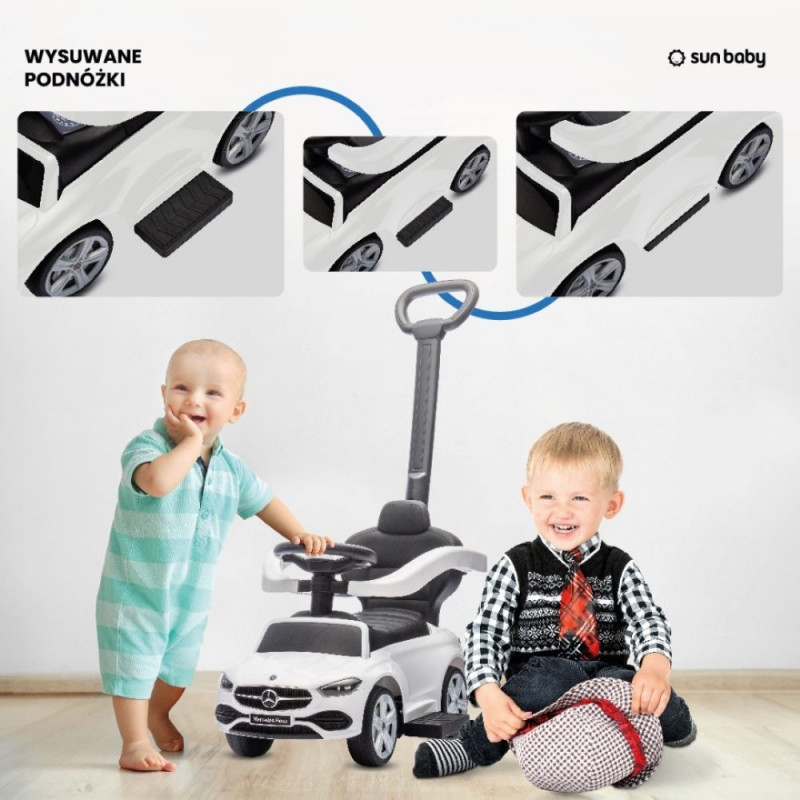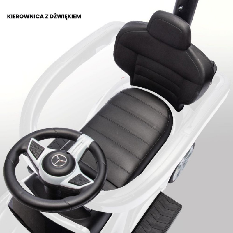 Jeździk pchacz chodzik dla dziecka Mercedes C-Class z popychaczem i podnóżkiem biały