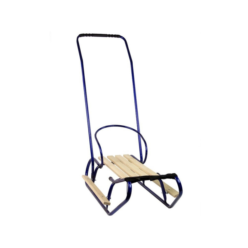Sanki metallist lükkesangaga seljatoe ja rihmaga sinine