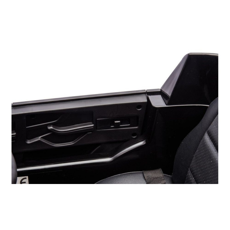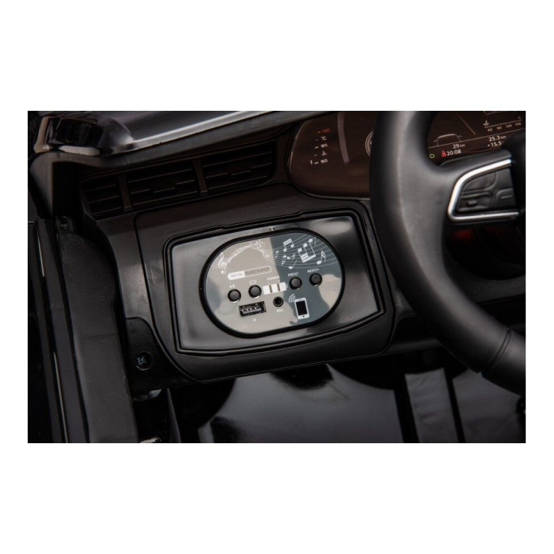 Akusõiduk Mudel: HL678 Värv: Must lakitud Tehnilised andmed Mootor: 2x45W Aku: 12V7Ah Käigukast: Automaatne, 3 kiirust Sõiduki mõõdud: 117 cm x 58 cm x 53 cm Kiirus: 3–7 km/h Tühimass: 17,5 kg Maks. kandevõime: 25 kg Laadimisaeg: 8 tundi Tööaeg: kuni 1 tund Pidur: Automaatne, töötab gaasipedaali vabastamisel Varustus Turvavööd: ? Avatavad uksed: ? Võtmed: ? Iste: Pehme ökonahk Rattad: Pehme EVA Pult: 2.4G Tuled: Ees- ja tagumised LED-tuled Audio: MP3-sisend Lapse vanus: alates 3. eluaastast Kauba pikkus sentimeetrites: 120 Kauba kõrgus sentimeetrites: 58 Kauba laius sentimeetrites: 35 Mahukaal grammides: 40600Toote koodid