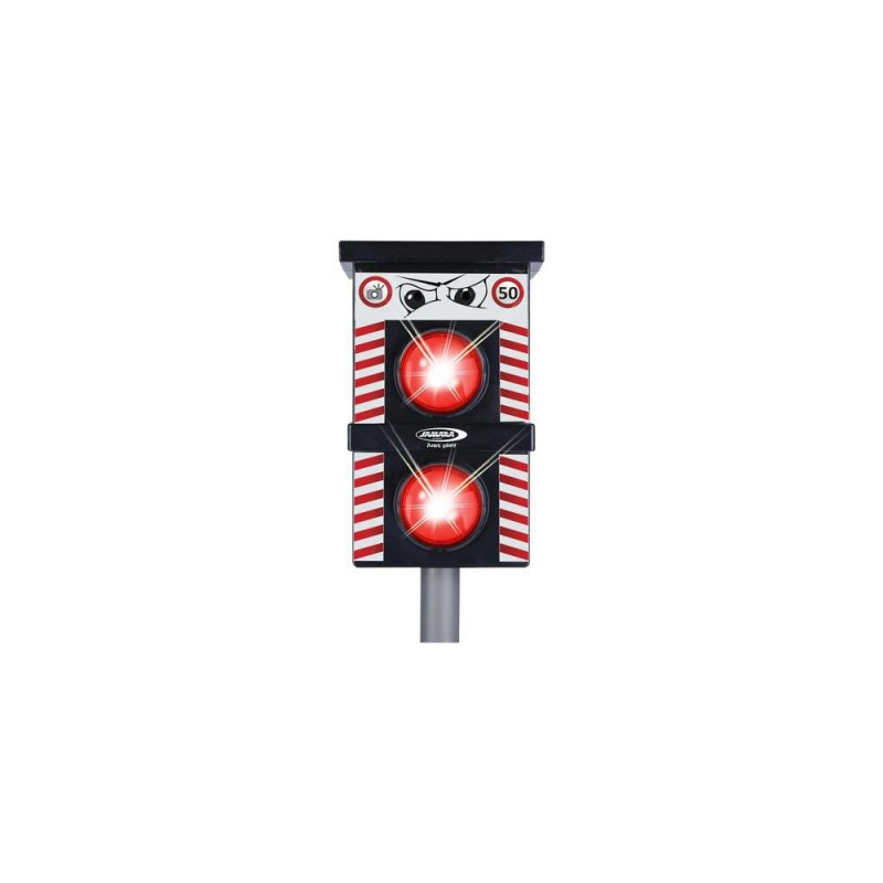 JAMARA Toy Speed Camera – Learning with Light and Sound. With the realistically designed toy speed camera from JAMARA, traffic education becomes an exciting role-playing experience. Young traffic officers can experience traffic monitoring up close and learn what it means to drive too fast – all while playfully understanding the importance of traffic rules. Whether in a child’s room, daycare, or educational setting: this speed camera combines educational value with real play fun (toy – no real photo function!). The highlight is the realistic flash effect: just like the real thing, the red flash light is triggered and accompanied by a matching sound – a striking and memorable experience! The flash is activated either automatically via a built-in motion sensor or manually by pressing a button. This allows children to decide for themselves when to "flash" speeding vehicles. The 5-piece set is quick and easy to transport and assemble. Thanks to the large base, poles, and secure plug-in system, the speed camera stands firmly and is ready for immediate use. Whether as an accessory for vehicle play or as a teaching tool for traffic education – the JAMARA toy speed camera is both fun and meaningful.Jamara Speed camera Traffic Flash. Product type: Toy traffic light, Recommended age (min): 3 yr(s), Sounding, Product colour: Black, Red. Weight: 370 g
