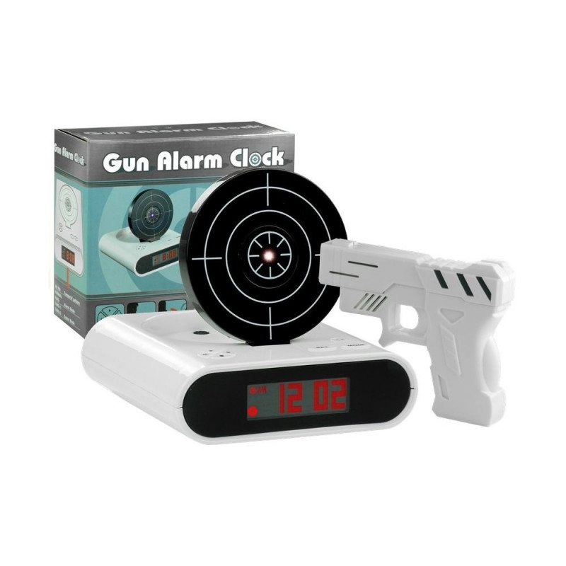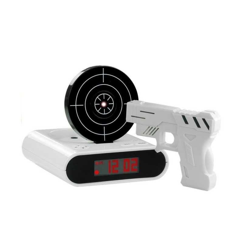 Selle äratuskella eelisteks pole ainult huvitav disain. Erinevalt klassikalistest kelladest töötab see vaikselt, on täpne ning selle suur must ekraan võimaldab kellaaja lugemist ka südaööl. Lisaks – see on ka suurepärane mänguasi! Komplektis on valge püstol, millega saab äratuskella sihtmärgi pihta tulistada. Harjuta igal hommikul täpseid laske! Samuti on võimalik salvestada sõnum või lemmikmeloodia, mis Sind igal hommikul äratab – valik on piiramatu ja sõltub ainult Sinust ning Sinu maitsest.