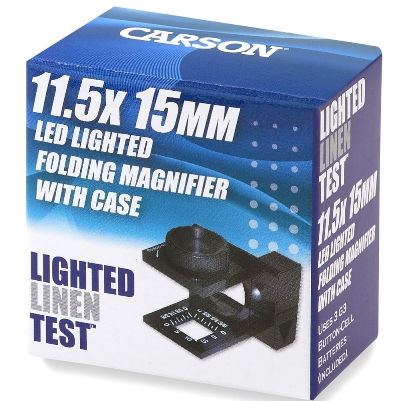 The Carson Folding Magnifier 11.5x15mm offers high magnification and built-in LED lighting, perfect for studying tiny details, even in low light. It's great for inspecting fabrics, stamps, and colours, and comes with a case and batteries.Osta kohe, viimased eksemplarid laos!