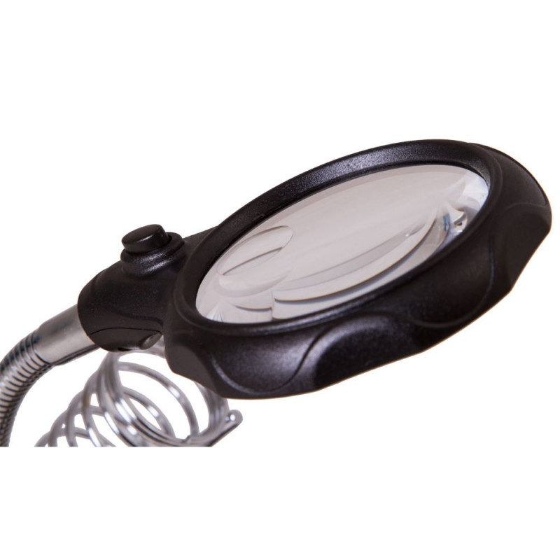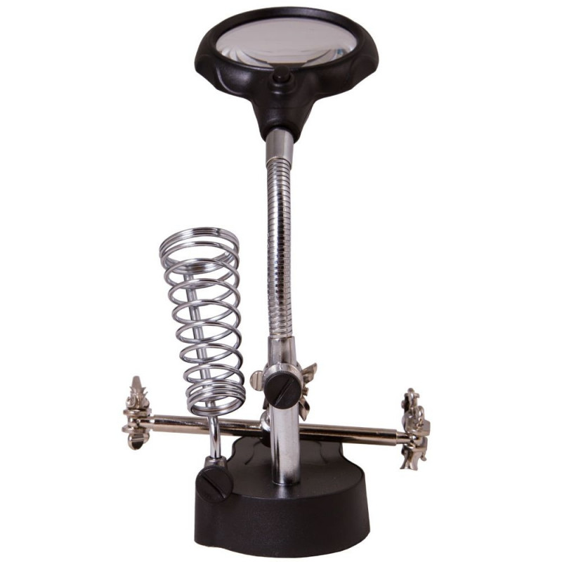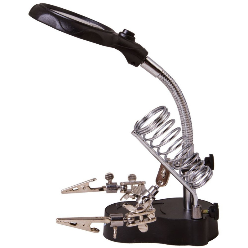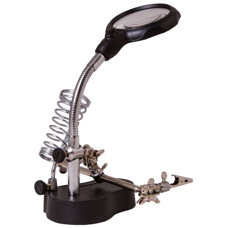 Levenhuk Zeno Desk PLUS D3 Magnifier is great for working with printed boards, for precision electronic operations, soldering, repair, jewelry making or modeling. Apart from the magnifying glass on the flexible neck, Levenhuk Zeno Desk PLUS D3 Magnifier also has a third hand. This tool helps to firmly fix any electronic boards or tiny objects and makes longtime work much more comfortable. One more holder is available for keeping your tools nearby while working.