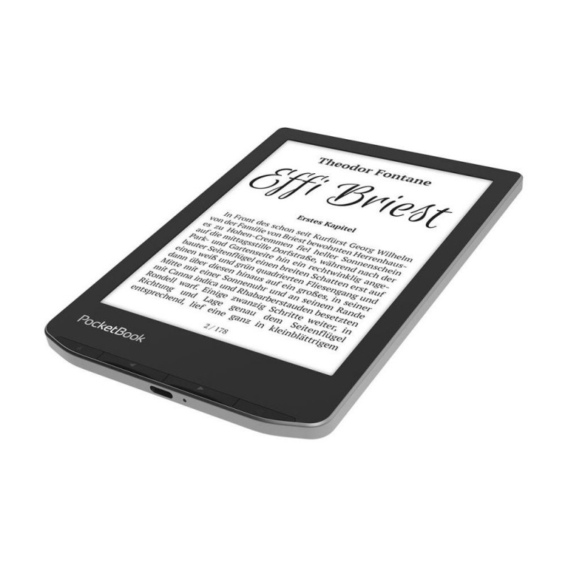 PocketBook Verse. Ekraani diagonaal: 15,2 cm (6"), tehnoloogia: E Ink Carta, ekraani resolutsioon: 758 x 1024 pikslit. Toetatud dokumendivormingud: ACSM, DOCX, AZW, DjVu, PRC, AZW3, EPUB, MOBI, RTF, EPUB DRM, FB2, PDF, CBR, FB2.ZIP, PDF DRM, TXT, ... Toetatud pildiformaadid: PNG, BMP, TIFF, JPEG. Sisemälu maht: 8 GB, ühilduvad mälukaardid: MicroSD (TransFlash), maksimaalne mälukaardi suurus: 128 GB. Protsessori taktsagedus: 1 MHz. USB-pistik: USB Type-C.